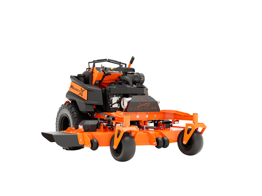 The Revolt X's shorter frame and curved I-Beam front fork give you a lower center of gravity for maximum maneuverability and visibility. With its upgraded operator pad and fender mounted support steps no other stand-on mower can compete with this unbelievably smooth ride.